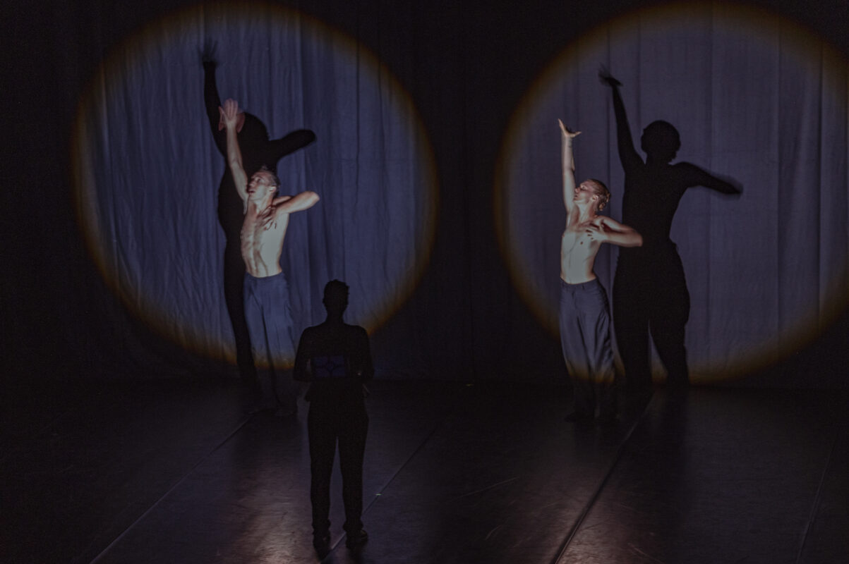 Matteo Vignali e Noemi dalla Vecchia sono due facce della stessa medaglia che inseguono una terza presenza sul palco, vestita di luci. I due performer invano confliggono, invano collaborano, nulla sembra bastare per mantenere quella luce puntata su di loro. Non importa il come o il quanto, la luce sfugge dal controllo dei due spogli, vestiti solo di un morbido pantalone nero che richiama il colore del sipario, in una scenografia minimalista, quasi onirica e surreale. Una coreografia ricca di movimento che allo stesso tempo esplora l’impotenza umana tra concetti effimeri quali fortuna e sfortuna, ma anche la resilienza e lo spirito di adattamento umano, restituendo nel finale una riflessione sul coraggio di lasciare ciò che fino a quel momento si riteneva indispensabile e che racconta la complessità della psiche umana.