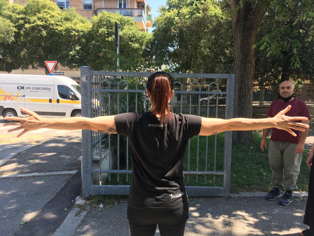 Dopo un weekend di laboratorio intensivo che ha avuto luogo a giugno, insegnanti e performer, forti degli stimoli ricevuti e degli strumenti condivisi dall’artista, hanno proseguito nel corso della stagione estiva la loro personale ricerca nello spazio urbano, sperimentando e coinvolgendo anche le loro allieve, per arrivare alla creazione dell’evento ospitato al Festival Ammutinamenti. Una preziosa occasione in un periodo storico difficile, per tener vivo il rapporto tra insegnante e allievo/a, continuare a nutrire la propria creatività e a immaginare traiettorie differenti.